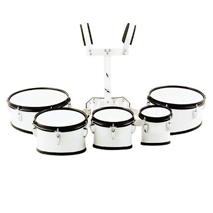 AP Percussion QAZ-05 Набор том барабанов маршевый профессиональный 6" 8" 10" 12" 13" белый, черная фурнитура с держателем, палочки