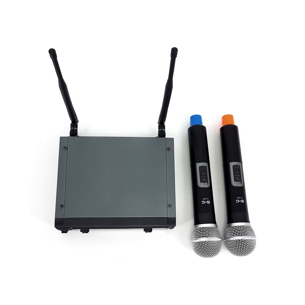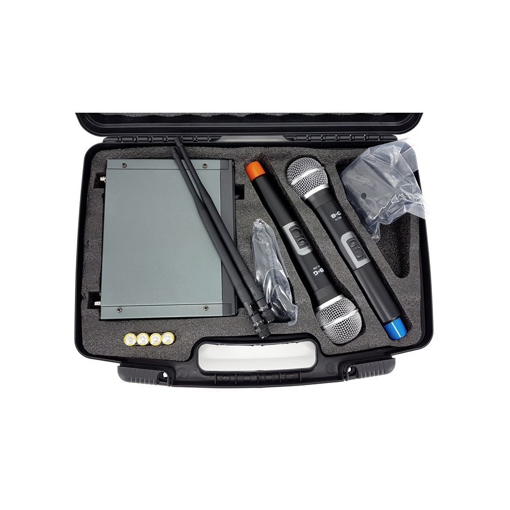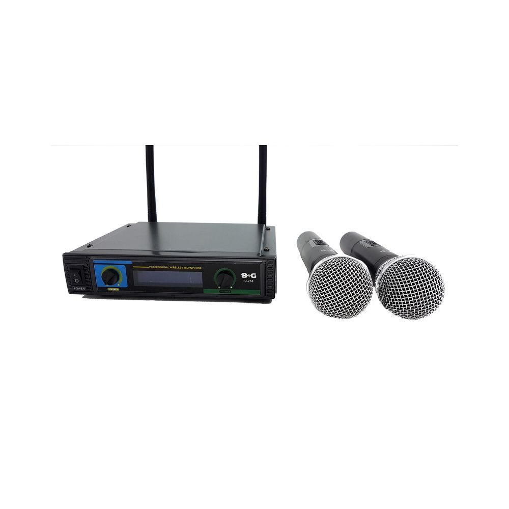 BG IU-258 Радиосистема вокальная, UHF 600-870MHz, фиксированная частота, Led дисплей, 2 ручных микрофона
