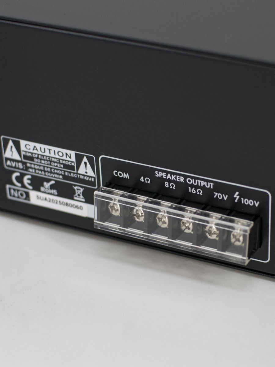 Мощность усилителя, RMS/пик, Вт: 240 Входы: 3 Mic, 2 Aux Выходы: 70V/100V/4-16ohm Размер (ШхВхГ): 484×88х335 мм Вес: 9,6 кг Дополнительно: Mp3, SD, FM тюнер, Bluetooth
