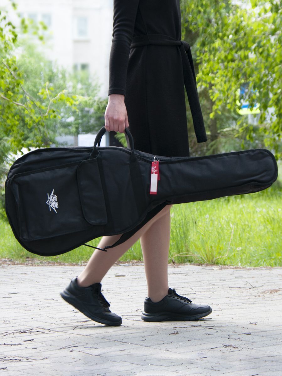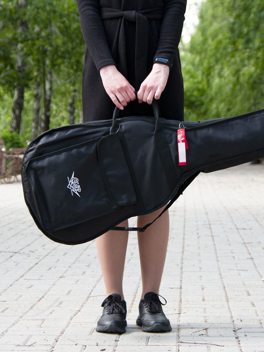 CNB CB400 – это стильный и качественный чехол для классической гитары. Главное назначение модели CNB CB400 – оберегать инструмент от внешних воздействий окружающей среды, которые негативно сказываются как на внешнем виде гитары, так и на ее звучании. Чехол изготовлен из водонепроницаемого нейлона с плотностью 600 D. Защитное уплотнение толщиной 7 мм предотвращает появление царапин и потертостей на инструменте. Чехол закрывается на прочную молнию с крепкими зипперами. Модель имеет большой наружный карман для хранения нот и гитарных аксессуаров. Заплечный ремень позволяет с удобством переносить гитару за спиной. Для транспортировки инструмента в горизонтальном положении имеются две прочные боковые ручки. Модель CNB CB400 выполнена в черном цвете, однако классический дизайн прекрасно дополняет логотип компании, расположенный на кармане. Чехол CNB CB400 создан не только для надежной защиты инструмента, но и для вашего комфорта.