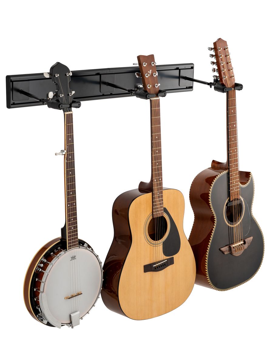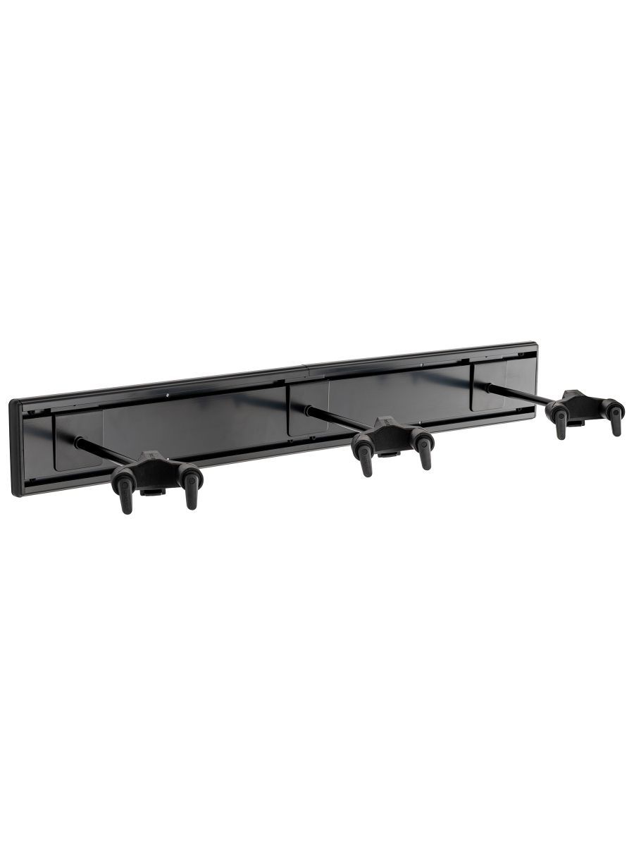 Hercules GSP403SB - настенная панель с крючками для трех гитар разработана для музыкантов, которым требуется надежное и удобное решение для хранения гитар. GSP403SB оснащена тремя поворотными крючками AGS Yoke с автоповоротом, которые надежно фиксируют инструменты. Крючки регулируются по углу наклона и подходят для грифа шириной 40–52 мм. Конструкция панели позволяет расширять систему хранения, а регулируемое расстояние между крючками делает её подходящей для инструментов разных размеров, обеспечивая оптимальную защиту и демонстрацию ваших гитар. В комплект входят две настенные панели и три настенных крючка GSP40SB Plus с длинными ручками и адаптерами N.I.N.A. Пользователи могут легко добавлять новые наборы по мере роста своей коллекции гитар, комбинируя их с другими.