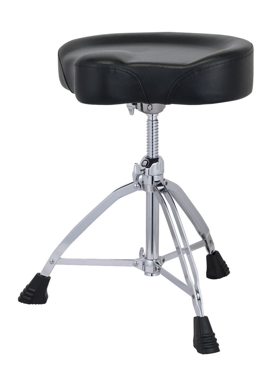 Mapex T855 – прочный, стабильный и комфортабельный стул с мото-сиденьем из винила, винтовой системой изменения высоты с литым замком, прочными двойными ножками. Мягкое виниловое покрытие седловидной формы размером 17 x 4 дюйма обеспечивает оптимальное распределение нагрузки и комфорт при длительной игре. Винтовой механизм с надежным фиксатором позволяет легко настроить высоту под индивидуальные параметры. Усиленная конструкция с наклонным креплением гарантирует максимальную устойчивость. Специальные накладки на ножках предотвращают скольжение и повреждение напольного покрытия. Стул Mapex T855 идеально подходит как для профессиональных барабанщиков, так и для продвинутых любителей. Модель особенно рекомендуется для длительных выступлений и репетиций благодаря продуманной эргономике и надежности конструкции.