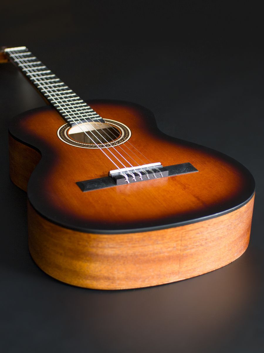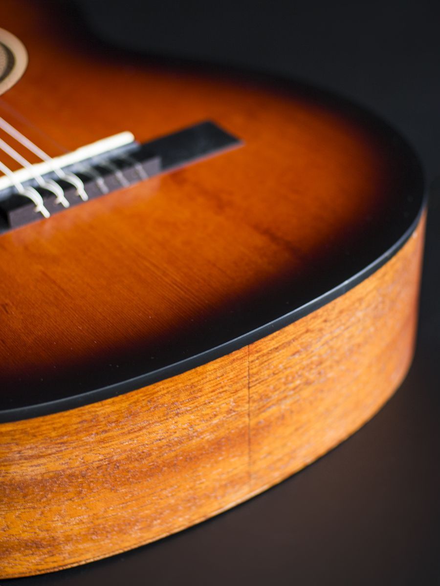 Valencia VC203HCSB Гитара классическая 3/4, верхняя дека: ель, нижняя дека и обечайка: нато, узкий 42 мм гриф: махагони, накладка грифа и нижний порожек: махагони, колки: винтажные, никель, цвет Classic Sunburst